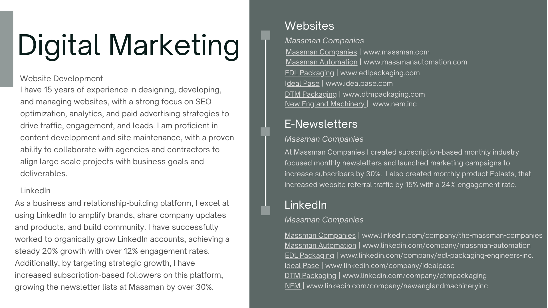Bringing strategic marketing expertise in Product Management and Product Marketing, I drive impactful results across all phases of the product lifecycle through omnichannel campaign strategy, SEO, analytics, and website optimization. My expansive background includes leading cross-departmental collaboration to craft product stories that resonate with target audiences while reinforcing brand identity. Passionate about building brands, I thrive at the intersection of analytics, creativity, and strategic vision, delivering measurable outcomes that fuel business growth.